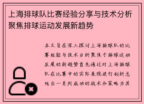 随着时代的发展,乒乓球作为中国的国球,其影响力不断扩大,成都乒乓球队也面临着新的挑战与机遇。为了适应现代体育发展的潮流,成都乒乓球队在转型过程中进行了一系列的热烈讨论,这些讨论围绕四个方面展开:人才培养、科学训练、市场推广和社会责任。本文将详细阐述这些方面的内容,探讨成都乒乓球队如何加速转型,并展望其未来发展路径。通过深入分析,我们希望能够为其他地区的乒乓球队提供借鉴,同时推动整个乒乓球事业的发展...