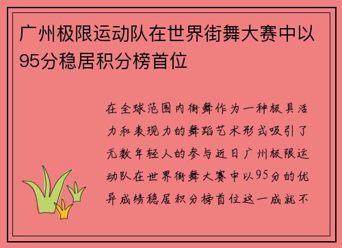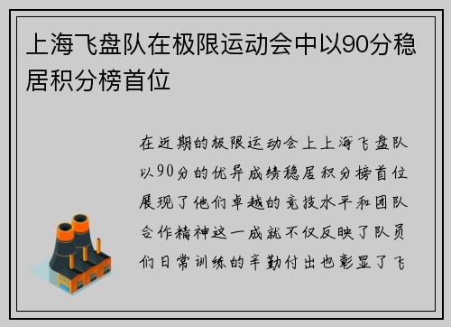 在城市马拉松积分榜的最新更新中,北京滑板队以97分稳居第一名,彰显了他们在比赛中的卓越表现和团队合作能力。本文将从四个方面对这一事件进行详细分析。首先,我们将探讨北京滑板队的表现和成就,接着分析其他队伍对积分榜的影响,然后讨论城市马拉松赛事的发展与意义,最后我们将展望未来赛事的发展趋势。通过这些角度,我们不仅能更好地理解当前积分榜的形势,也能感受到城市马拉松赛事带来的积极影响。 1、北京滑板队的...