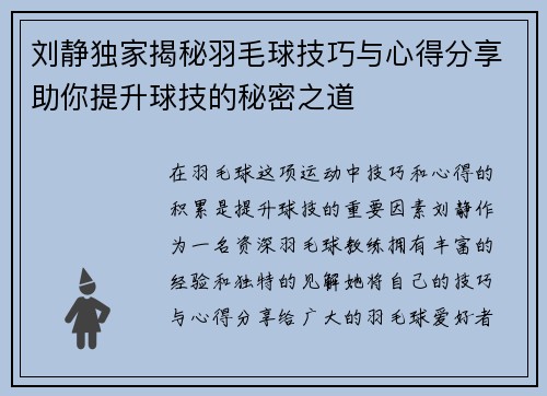 吴敏,这位羽毛球界的璀璨新星,从青涩少女一步步成长为冠军,背后不仅有艰辛的训练,还有她对羽毛球深厚的热爱和执着追求。在本次专访中,吴敏畅谈了自己的成长历程,包括早期的启蒙、职业生涯中的挑战与磨砺,以及对未来的展望。她分享了在竞技体育中如何面对压力与挫折,同时也强调了团队支持的重要性。整篇文章将从四个方面详细探讨吴敏的成长之路与心路历程,带领读者更深入地了解这位羽毛球冠军背后的故事。 1、早期启蒙...